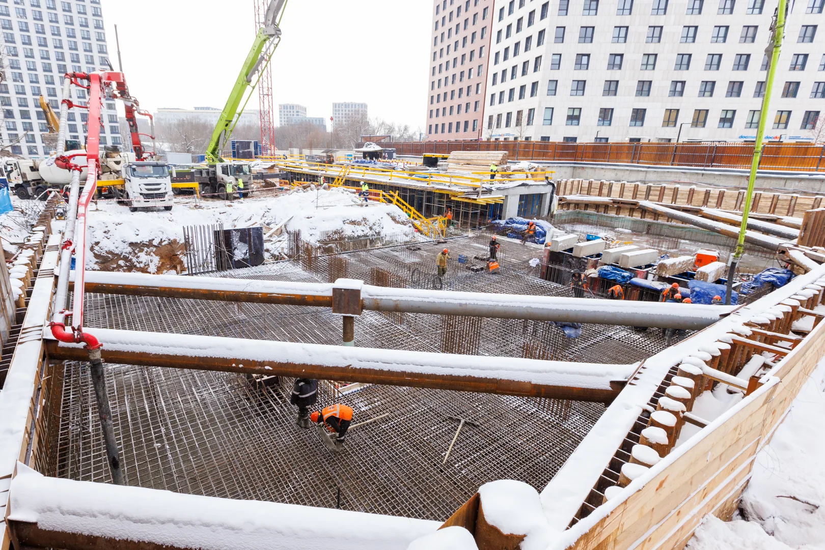 — Выполняется бетонирование фундаментной плиты