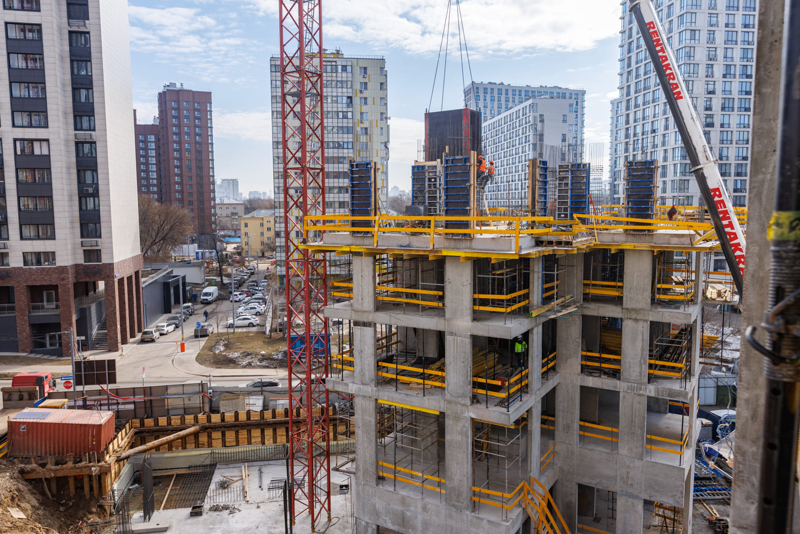 - Продолжаются работы по возведению вертикальных конструкций 8-го этажа.