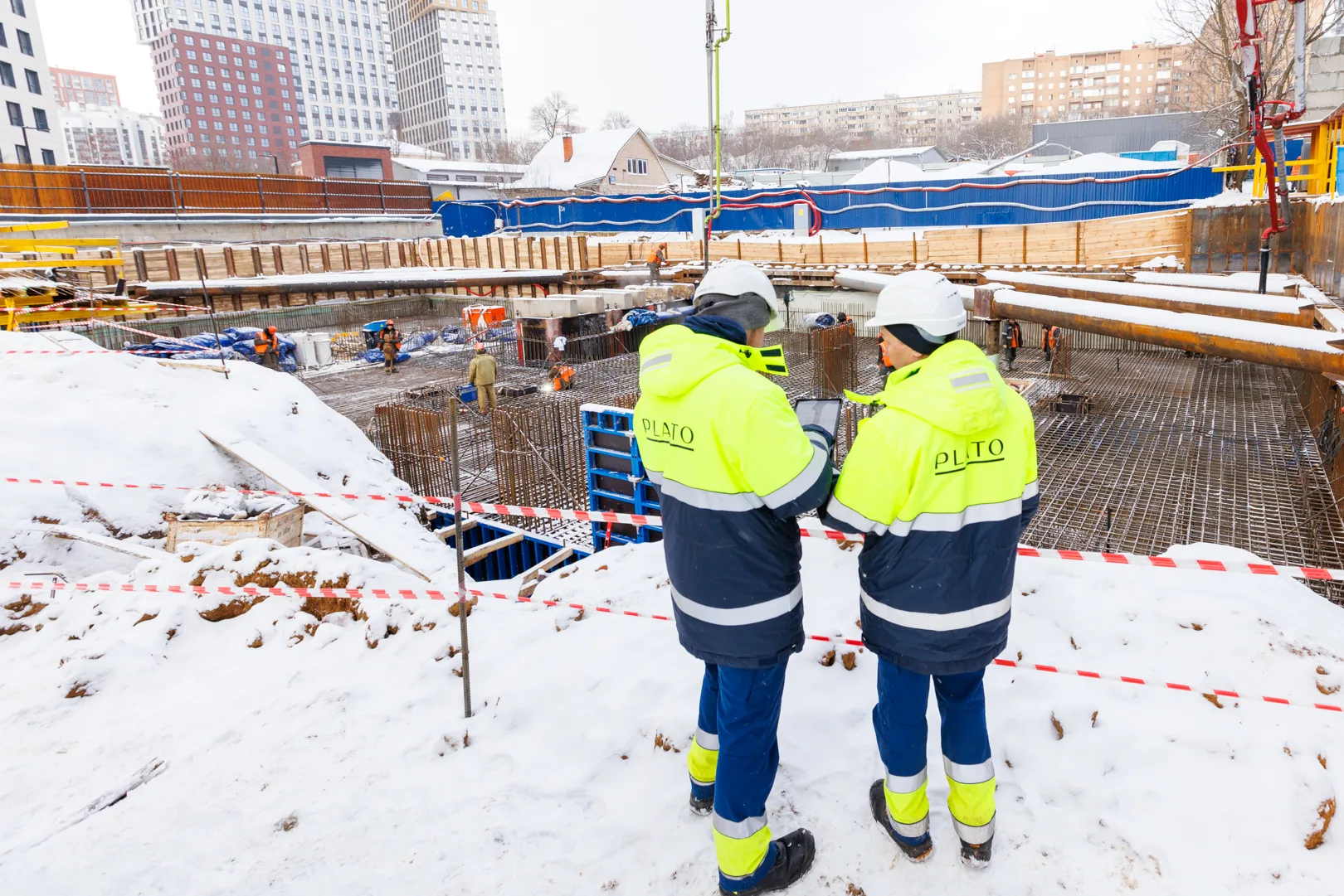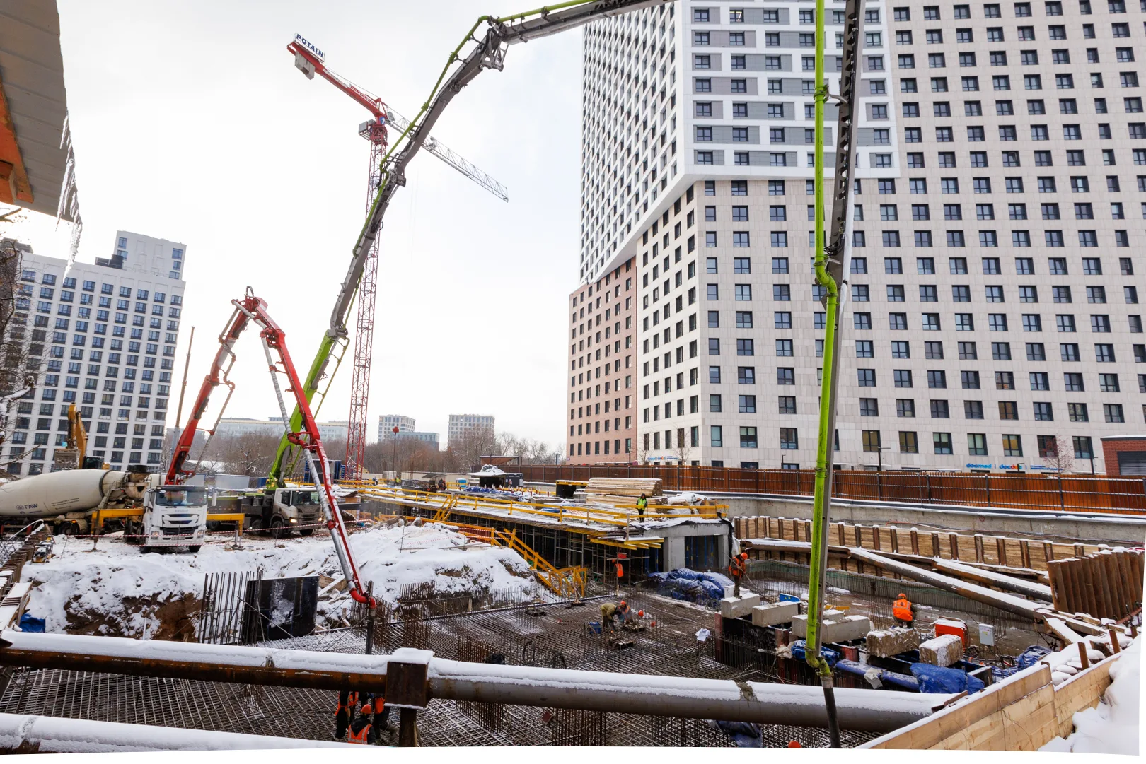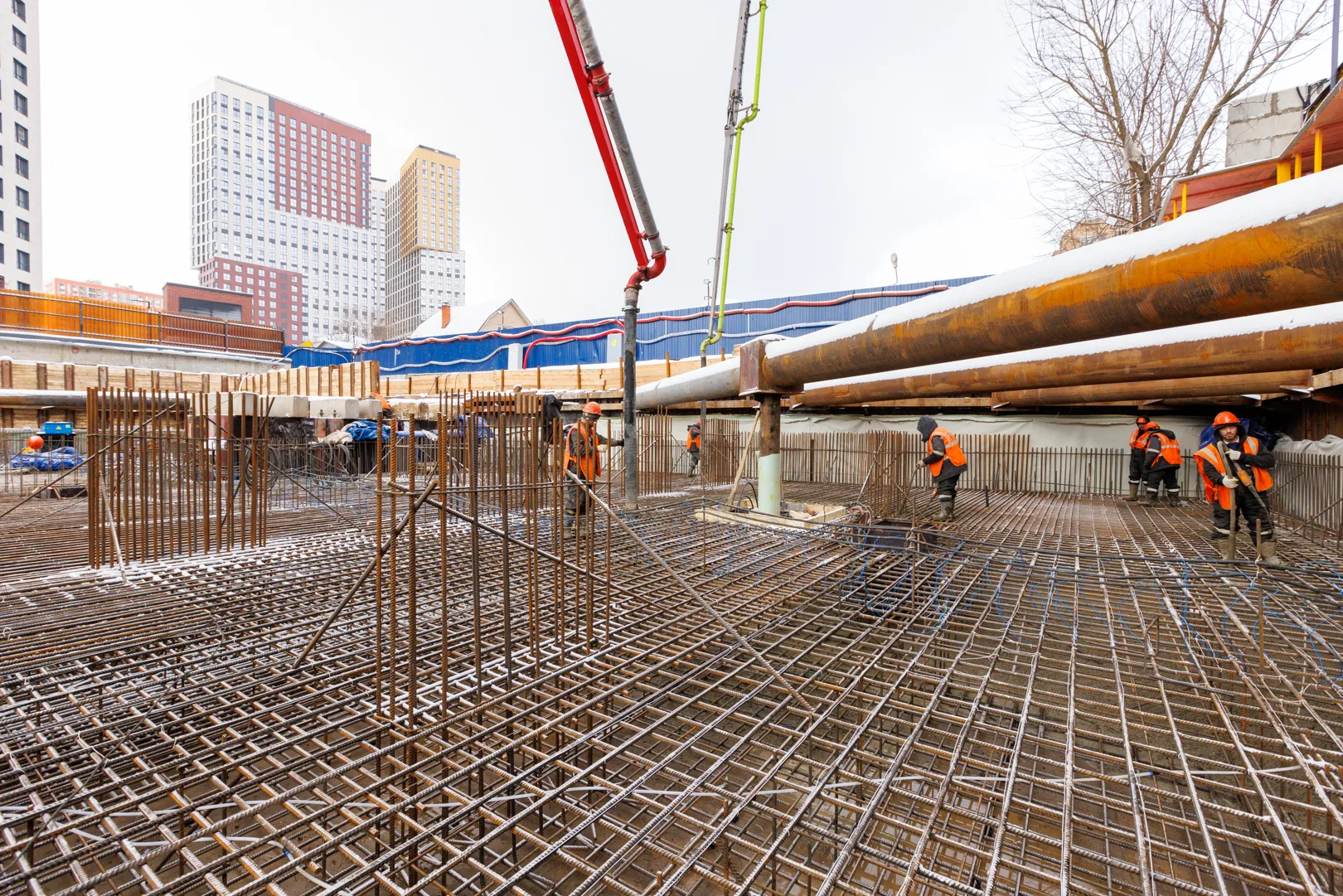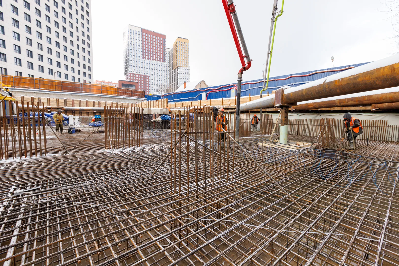 — Выполняется бетонирование фундаментной плиты