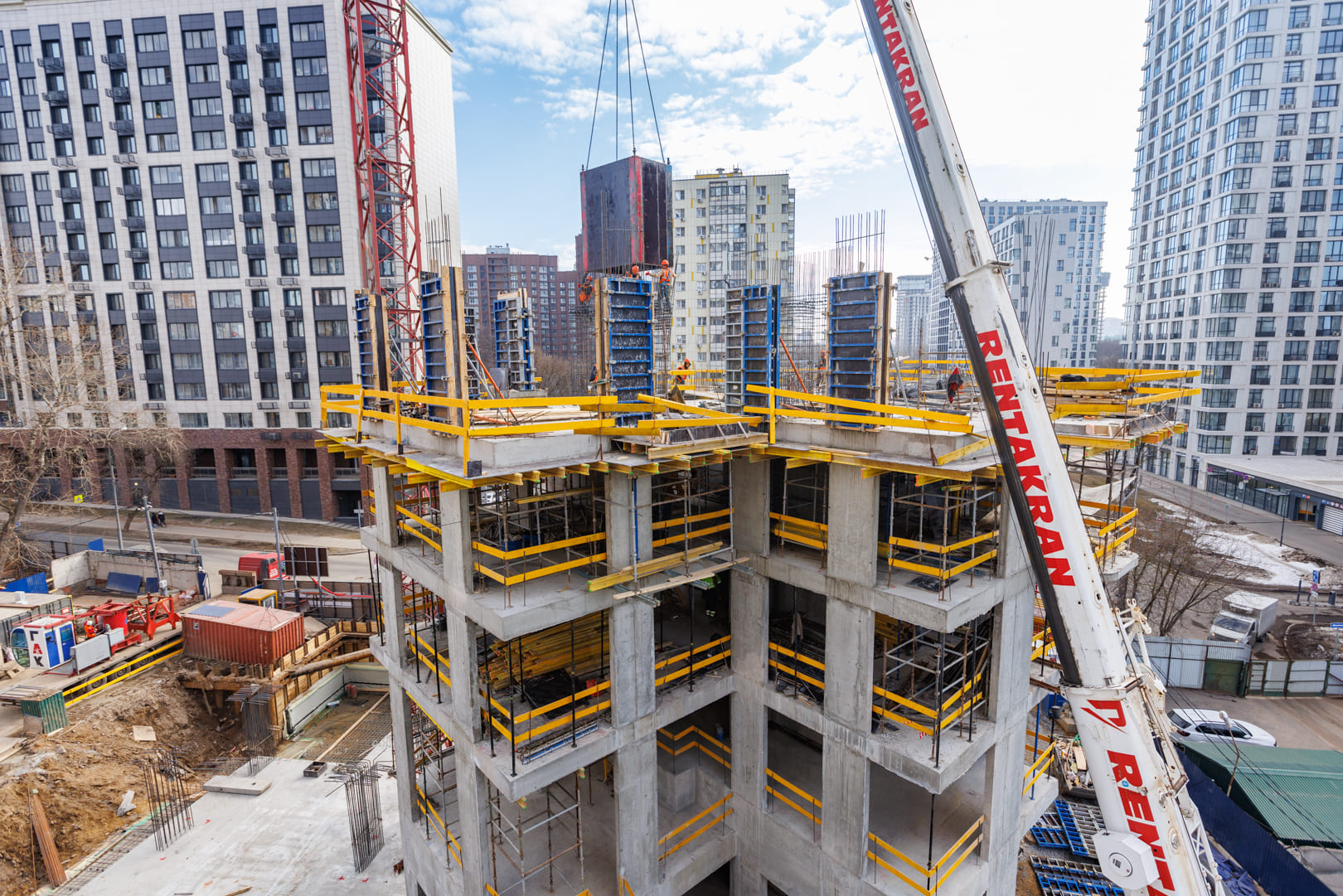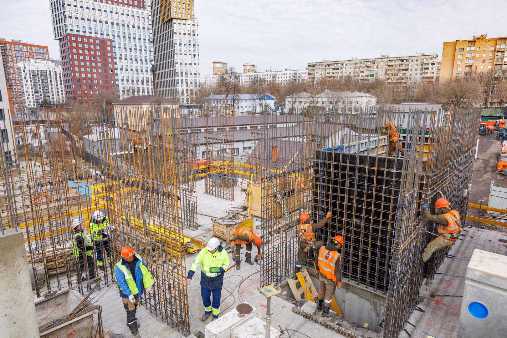 - Продолжаются работы по возведению вертикальных конструкций 8-го этажа.